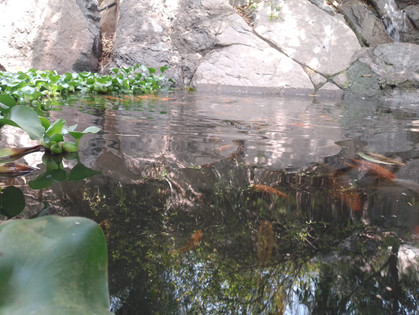 El lugar también cuenta con una catarata artificial que desemboca en un lago habitado por carpas de varios colores, donde las personas pueden darles de comer y reposar luego de la caminata.